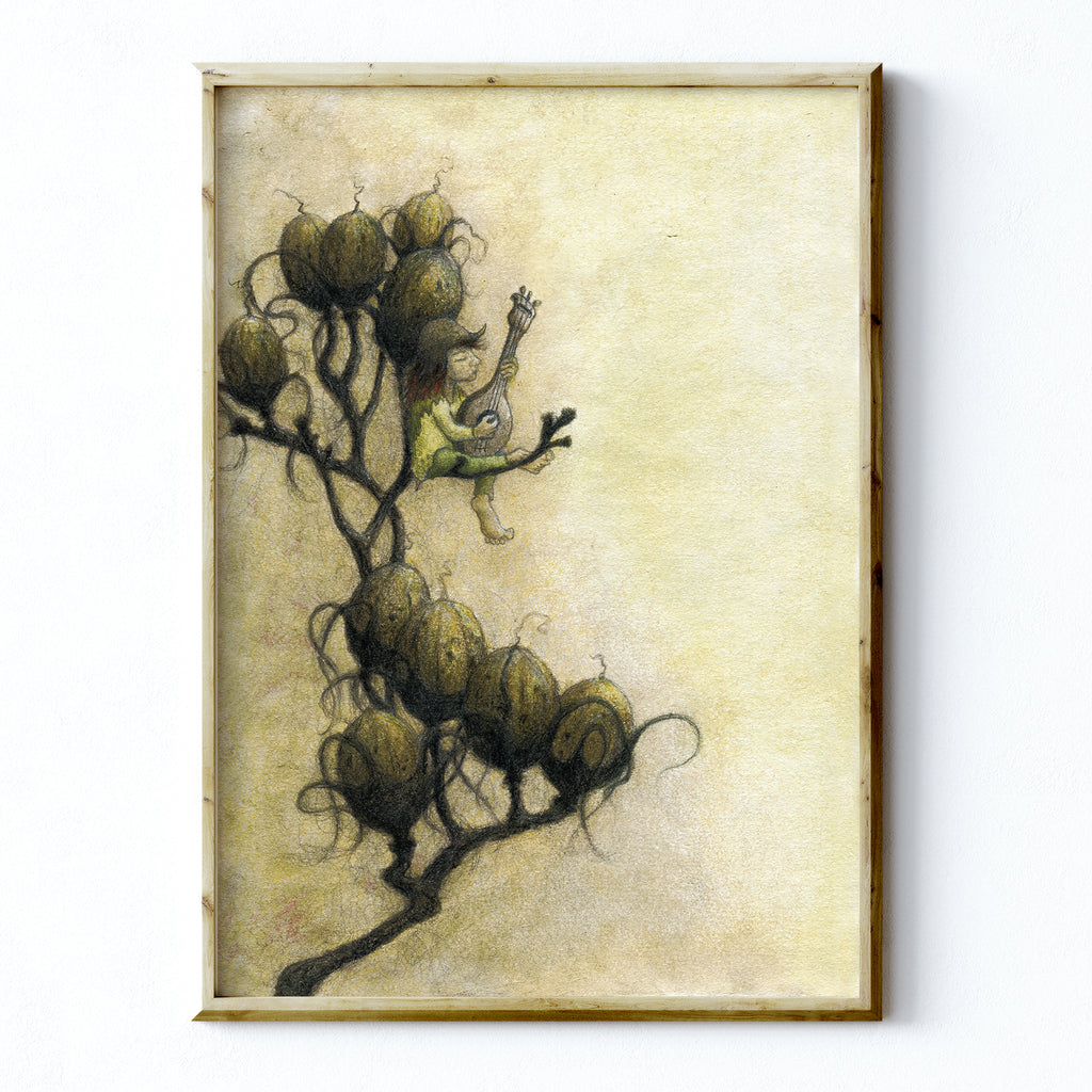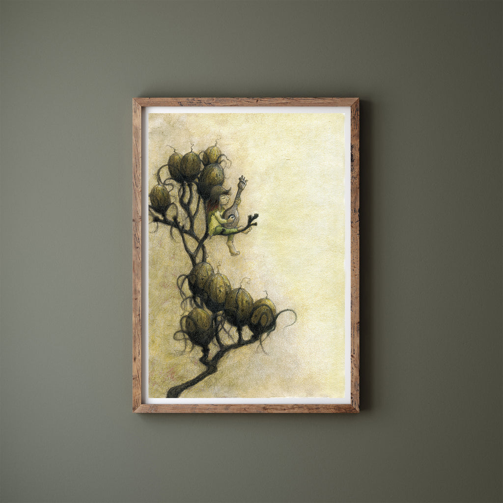 Fine Art Print from my original watercolour and pencil illustration titled 'Strumming in the Seedpods'.