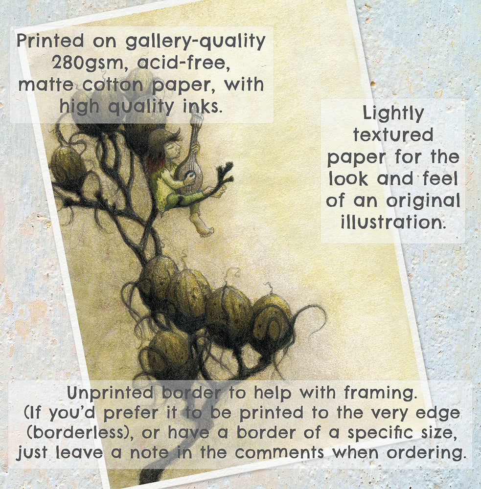 Printed on 280gsm, Fine Art, Acid-free, Smooth Cotton Rag Paper for the beautiful look and feel of an original illustration.
