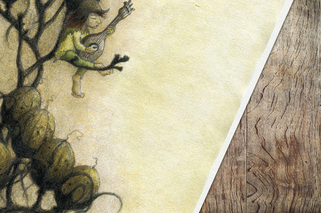 The illustration is of one of the little wildfolk making music.